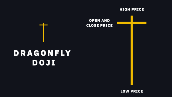Dragonfly Doji, gövdesi olmayan bir Hammer veya asılı adam gibi görünür.