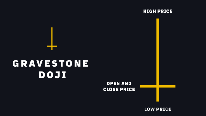 Gravestone Doji, ters çevrilmiş bir çekice veya kayan bir yıldıza benzer.